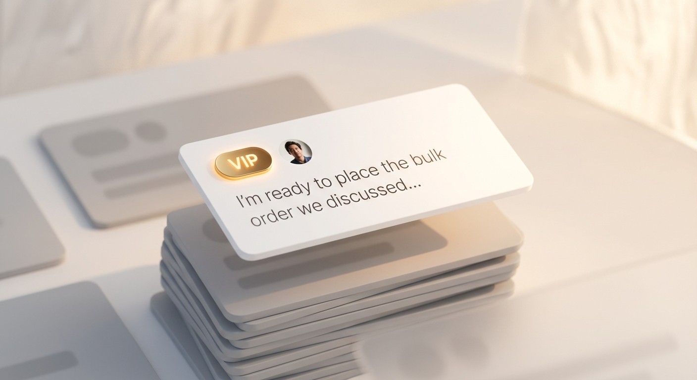 You can’t be everywhere at once. Automatically tag and sort conversations by value (like "VIP" or "Wholesale") so you can give your best customers the white-glove service they deserve first.